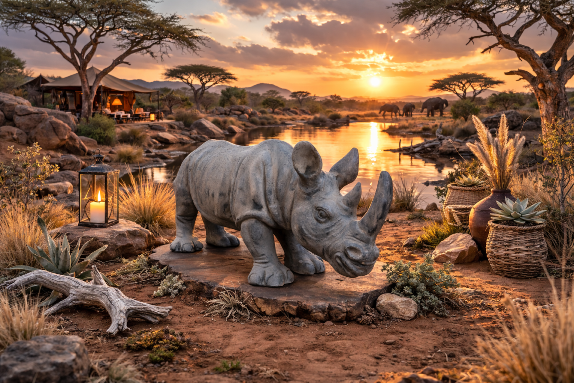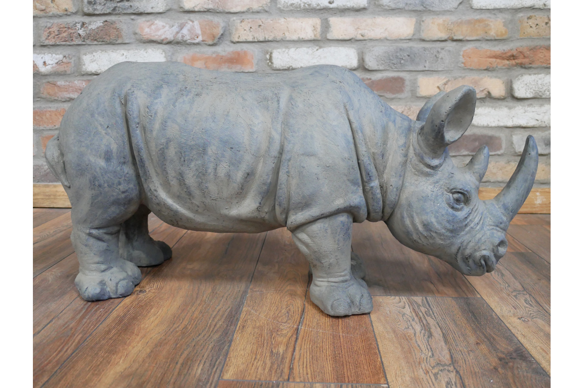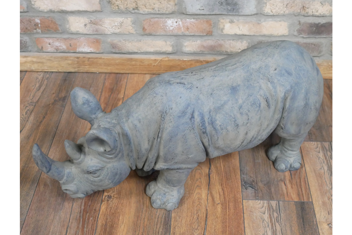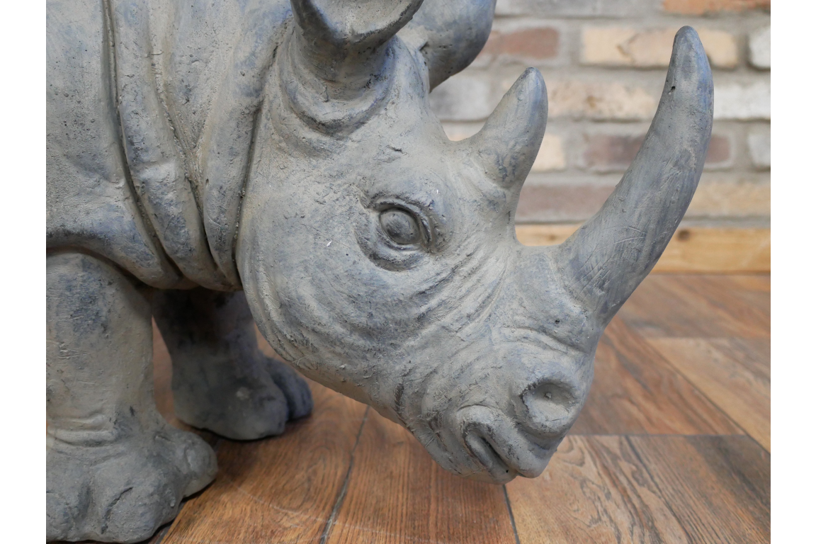 Grande statue animalière d’un rhinocéros en résine. Belle réalisation de décoration, un véritable accroche-regard dans n’importe quel environnement.