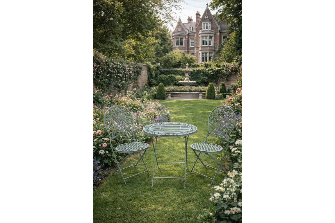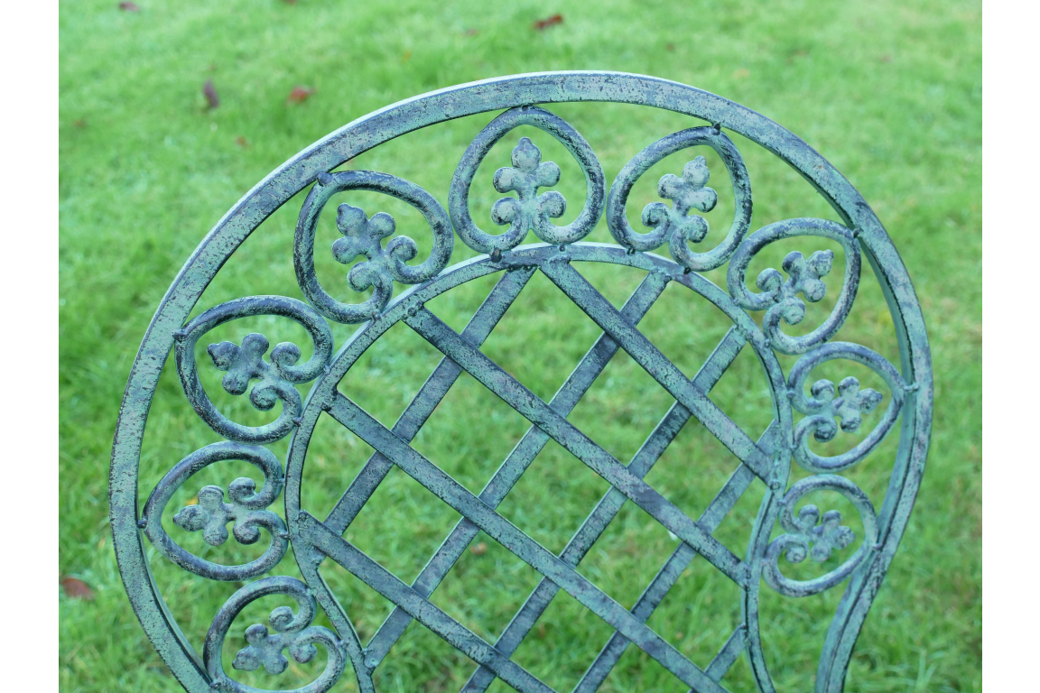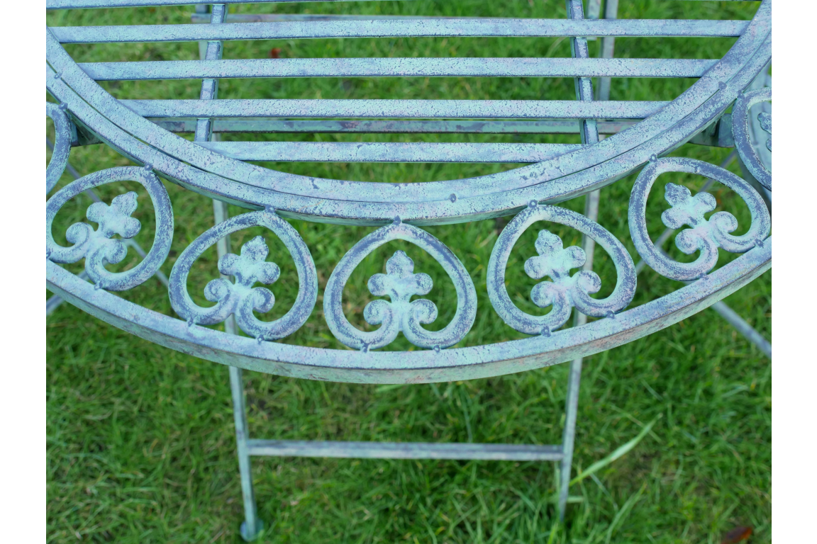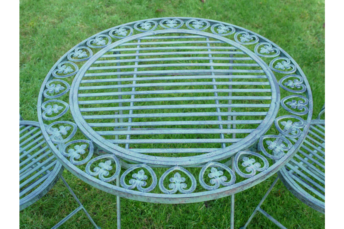 Salon de jardin en métal bleu vieilli. Très joli ensemble dans un style d’autre fois, avec une finition bleu vieillie pour donner un aspect ancien, brocante. Les trois pièces sont pliables, ce qui vous permet un rangement facile. Il est conseillé d’appliquer un traitement une fois par an, surtout si le salon reste continuellement en extérieur.