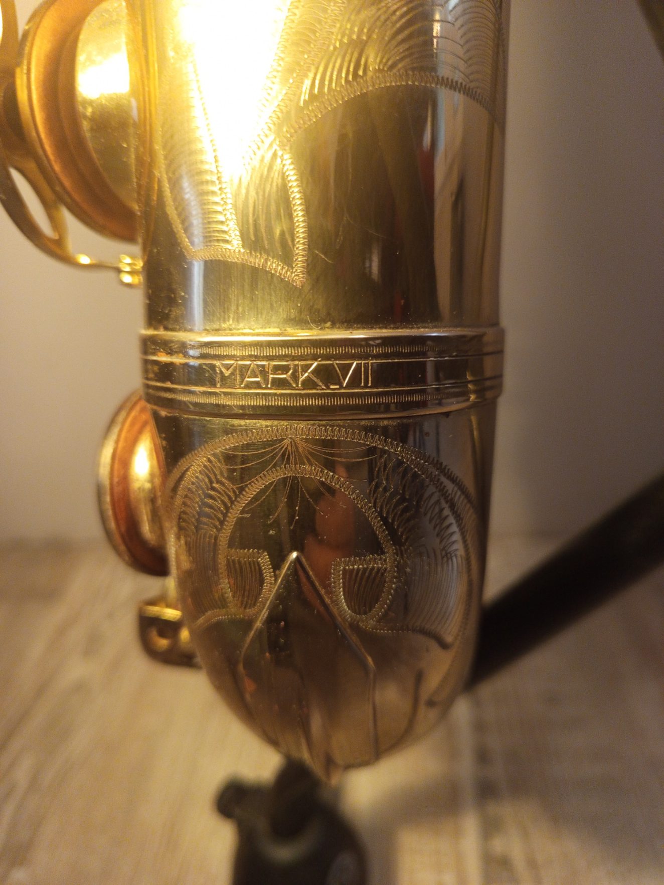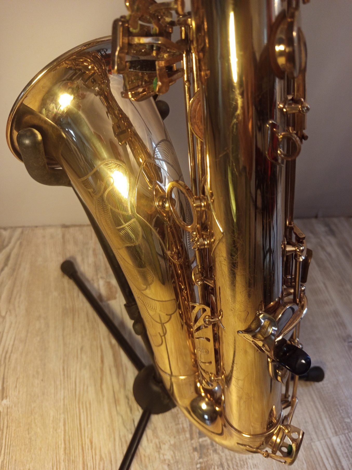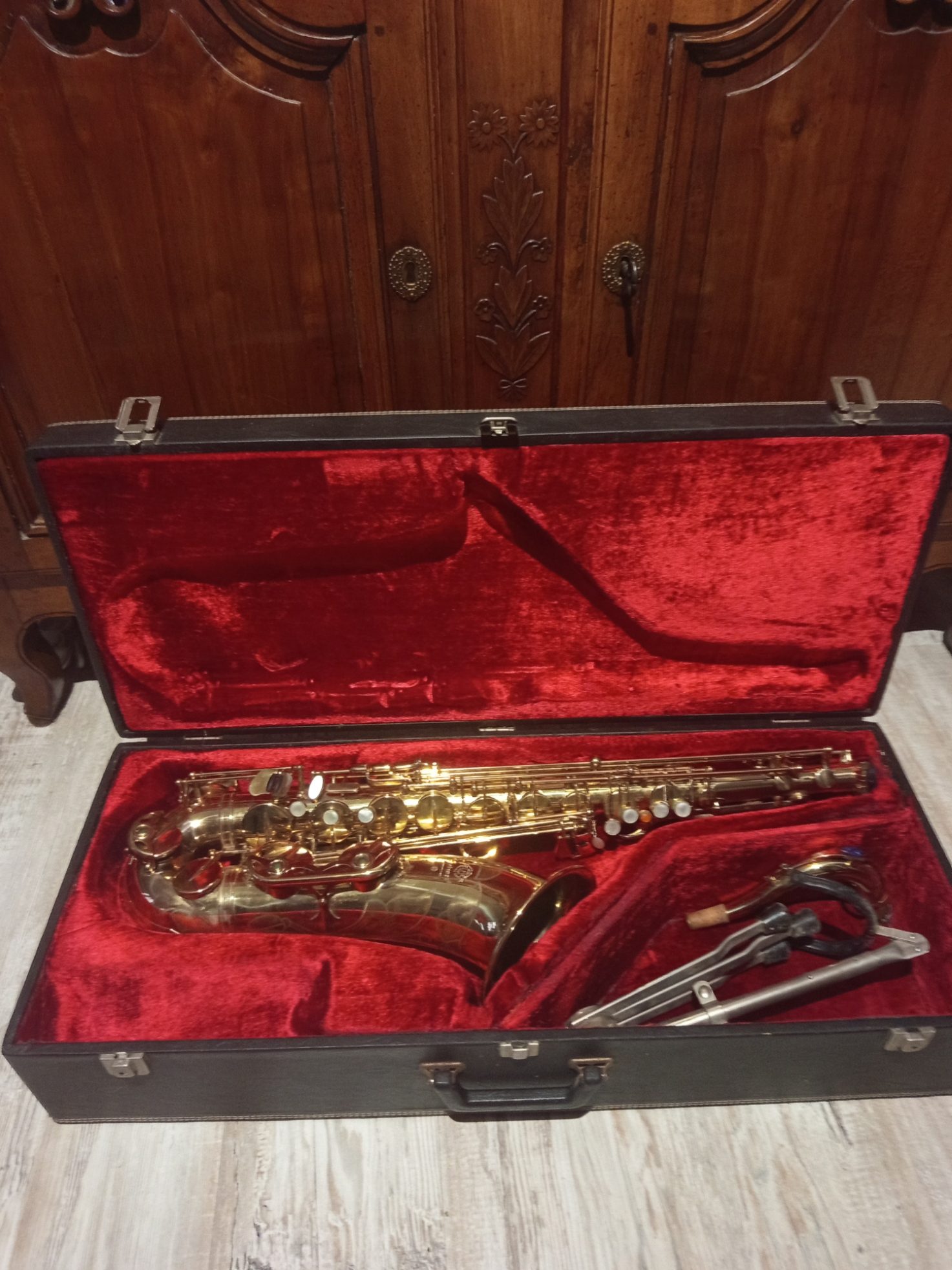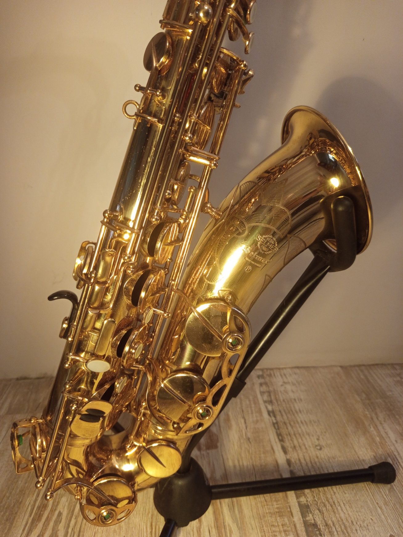 Saxophone Ténor Selmer Mark VII Gold de la marque SELMER de 1979 numéro de série 293334, vendu avec un bocal Super Action 80 pour un meilleur son. Propriétaire de ce Saxophone depuis 1985, peu joué, toujours bien entretenu et pour la vente entièrement révisé par un luthier. Facture à l’appui Travaux effectué : Démontage total Dépose des consommateurs ( tampons, lièges et feutres ) Nettoyage complet du corps et des clés Vérification des cheminées Ajustement du clétage Retamponnage des tampons en cuir Remise en place du pavillon Bouchage complet Réglage complet Le saxophone est vendu dans son coffre avec le kit de nettoyage et le support.