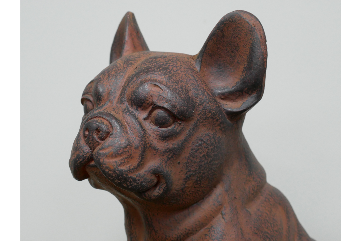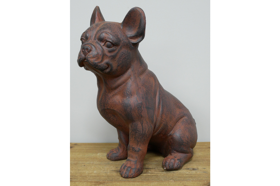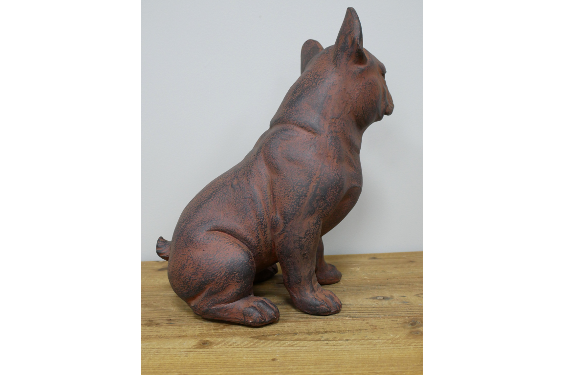 Statue d’un Bouledogue assis en résine. Joli décoration pour votre intérieur avec une finition aspect fonte vieillie.